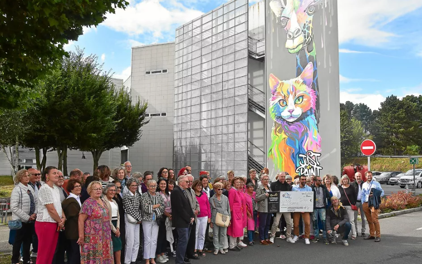Grâce à un don de 5 000€ de notre agence, le collectif d’artistes Just Paint a pu réaliser deux fresques murales à l’entrée du pavillon, situé au sein du centre hospitalier Yves-Le Foll.